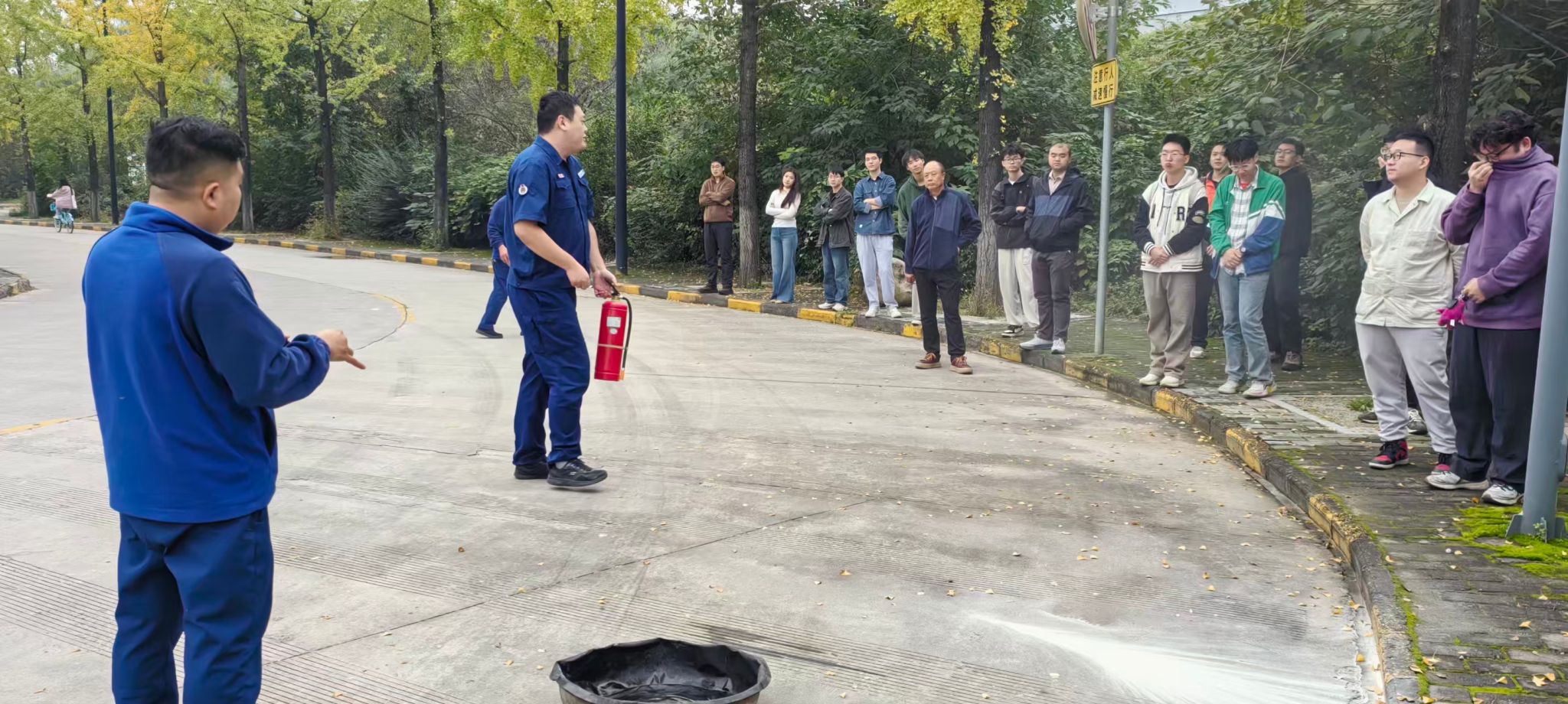 许老师为在场师生进行消防知识讲解和消防器材演示。举例介绍学校往期发生在实验室和宿舍的消防安全事故,强调宿舍里要注意高功率电器的规范使用、实验室内要注意危化品的存放要求。叮嘱师生在遇到火情时,要及时切断电源,并优先保证自身人身安全。