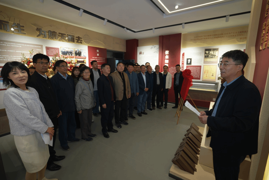 航天学院党委书记黄越详细介绍了纪念馆的建设过程、展陈布局与育人价值。为系统性传承弘扬院士精神,打造常态化的科学家精神教育阵地,航天学院建设了陈士橹纪念馆。纪念馆采用图文展板、实物陈列、多媒体互动、场景还原等多种形式,系统展现陈士橹院士“为航天而生、为航天而去”的奋斗一生,致敬航天教育事业开拓者,传承大师精神血脉。后续学院将不断更新完善展陈,建立常态化开放机制,让纪念馆成为传承科学家精神、弘扬航天文化、培育时代新人的重要平台阵地。