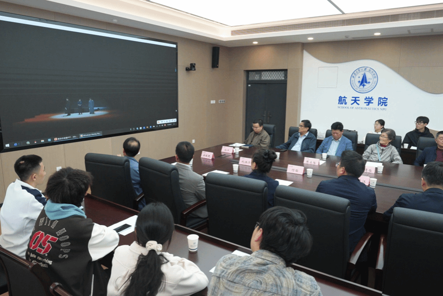 开馆仪式后,在航天学院C311会议室召开了“传承院士精神,凝聚奋进力量”纪念座谈会。与会人员首先共同观看了以陈士橹院士先进事迹为蓝本创作的主题话剧《剑指苍穹》节选视频。学校艺术教育中心主任张清江介绍了话剧创作的背景与推进情况,并表示今天的座谈会也是一次话剧创作研讨会,通过大家对先生的追忆和感悟,希望能为后续创作提供更多的灵感和素材。