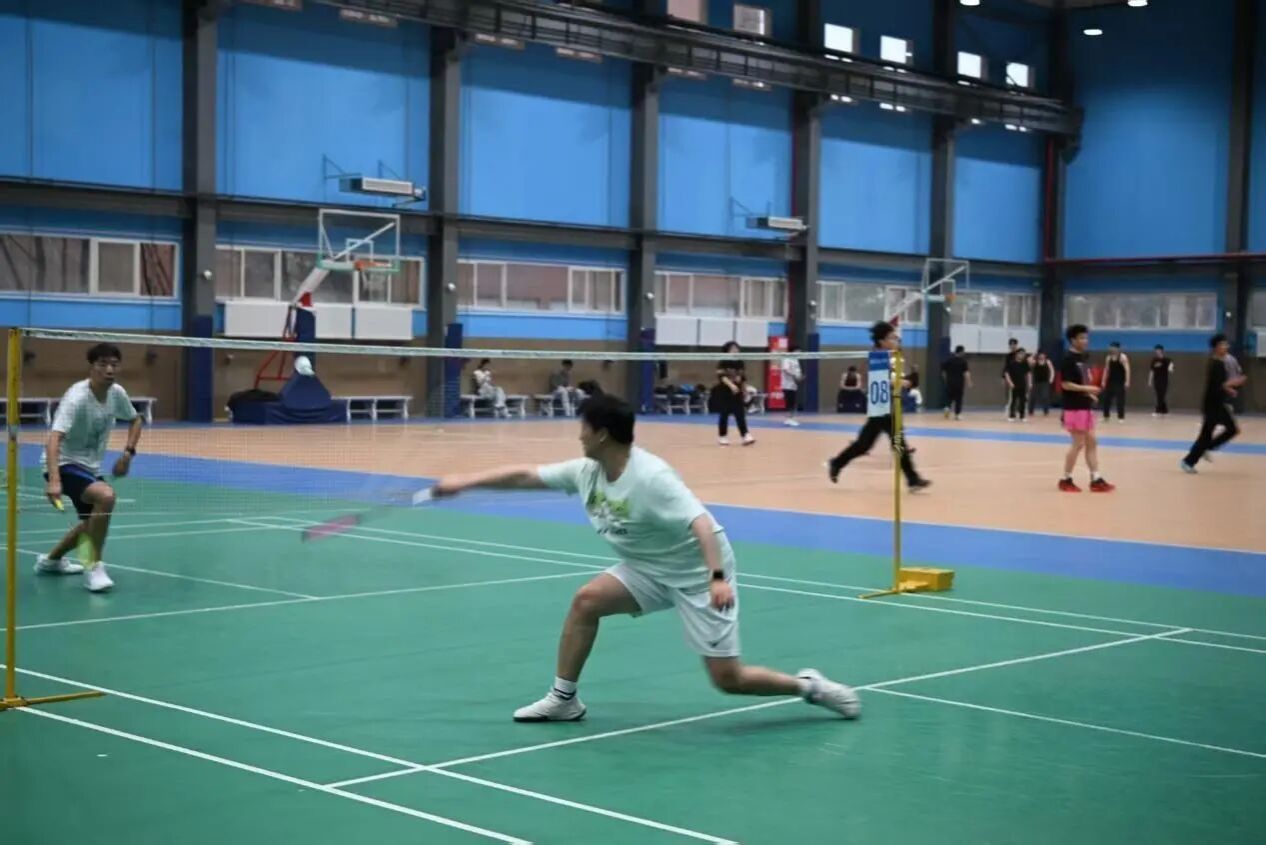 比赛在当日下午正式拉开帷幕。男子组通过抽签方式进行分组,首轮采用两轮瑞士轮淘汰制(单场15分,先到8分交换场地),经过激烈角逐,16强选手脱颖而出。女子组则将选手随机分为两个小组进行组内循环赛,每组前两名成功晋级下一轮。赛场之上,选手们个个精神饱满、斗志昂扬,跃起扣杀、轻吊网前、飞身救球,一招一式尽显青春锐气。