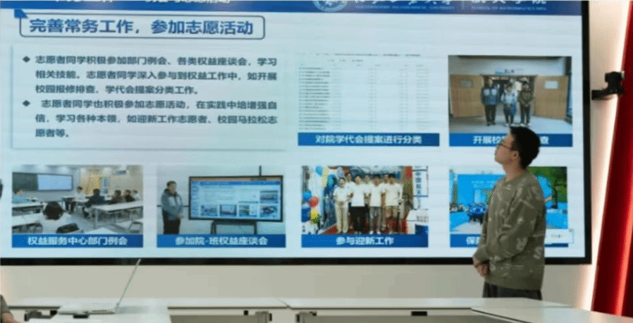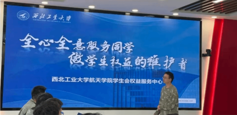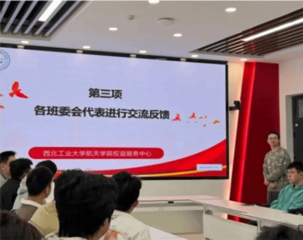 首先,航天学院权益服务中心负责人陆天详细介绍了航天学院权益服务中心的工作概况,总结了过去半年航天学院权益服务中心的工作情况和工作成果。