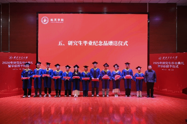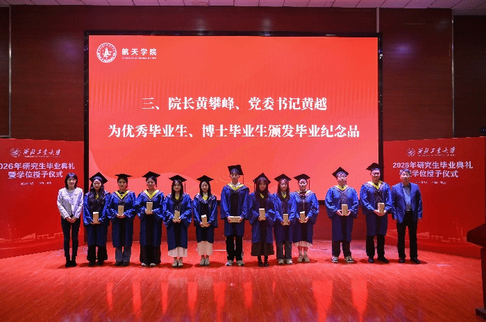 毕业典礼在全体师生齐声奏唱《西北工业大学校歌》中落下帷幕。随后进行了2026届研究生学位授予仪式,各研究所所长为毕业生逐一颁发毕业证书、行拨穗礼并合影留念,为学子们的硕、博士阶段求学生涯画上了圆满的句号。